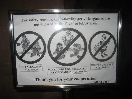 The pool was covered with signs of what you couldn’t do… which is the Singaporean way.. The wonderful cleanliness and order they have in their society is a result of many, many rules…”sign-sign, ever where a sign…” they even make fun of themselves about it .. They had shirts talking about Sign-apore.. It’s a ‘fine city’ J