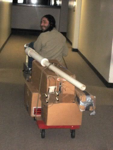 We couldn’t resist playing with soem of my science toys.. e fired the potatoe canon (which required a quick jump into the grocery store for hairspray)… and rode the go-cart around for awhile.. Lester is a geek like me… I could spend hours tlaking wiht him.