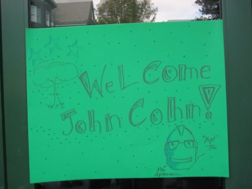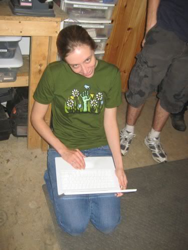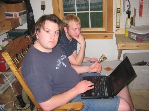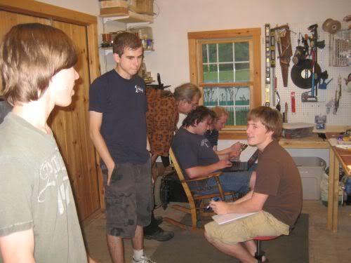 Here are Seth, Leo, Homer, Buddy, John and Brandon out in the lab.. trying to get one of the microcontrollers to speak to us. The controller is going to work the face of our monster.