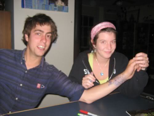 Meanwhile, inside.. while we geeks were out in the barn.. the ‘cool kids’ were inside writing on each other and singing ribald songs. Here is Nicholas and Carolyn.