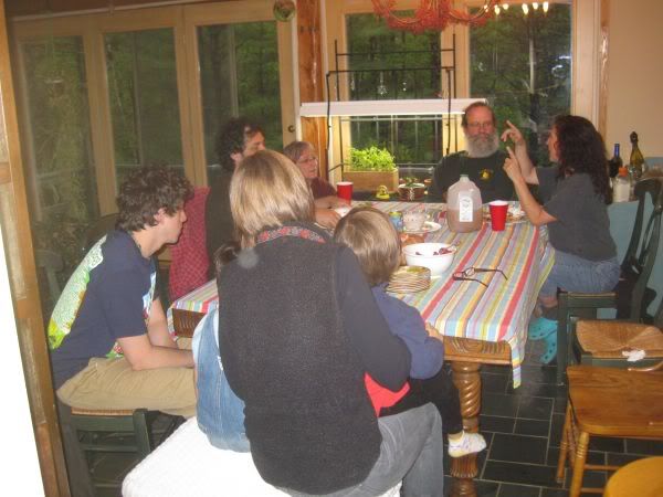 We went over to teh veggie potluck at anne and kieths.. abotu 5:30 ,, It was a fun get together.. soem of us drank a drink I accidently made up at an earlire party at anne’s.. carrot juice and white wine.. It’s much better thnan it sounds ! I think it makes your eyes sharper even as they get blurrier !