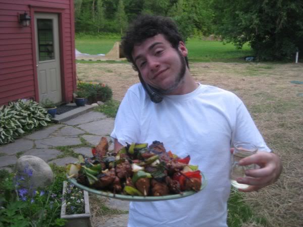 Luckily.. now he takes care of us sometimes… Tonight he decided to cook us dinner in honor of his birthday. Max is an excellent vegetarian cook. Tonight he showed us how to make seitan kabobs from powdered wheat gluten. They were amazing.. you start witht he gluten.. add a bunch of savory glop, knead it like crazy…