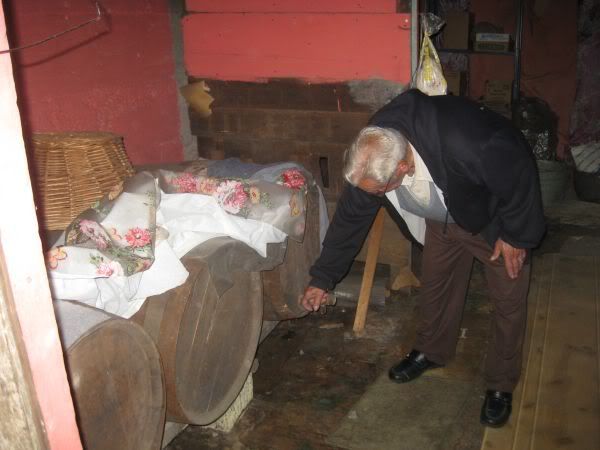 He then took us into the basement .. I remember it so clearly.. Here are the big casks where Diane’s grandfather used to make wine.. One of them was still half full.