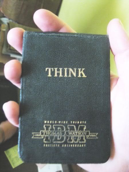 Inside he had an old IBM Think book form the 40’s !