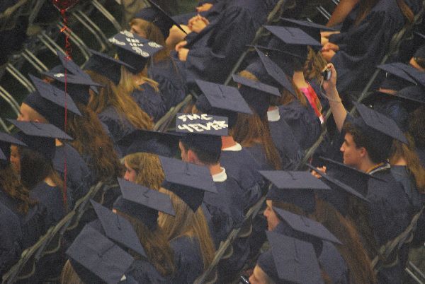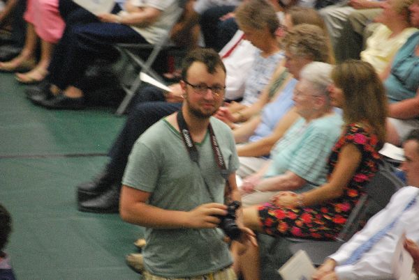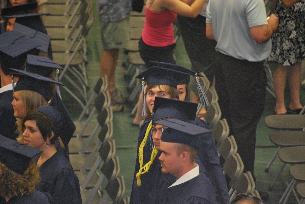 The grads-to-be all filed in.. and we tried to pick them out.. Here’s Nate wearing a sash of his own design