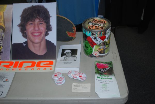 Dylan’s skate board was there.. as were some pictures and a copy of his memorial obit,. I added soem material about organ donation. Dylane was a 4 wat organ donor.. just liek Sam..