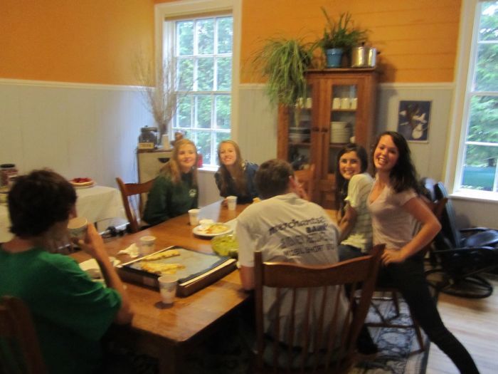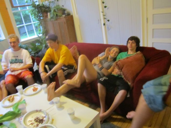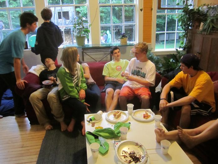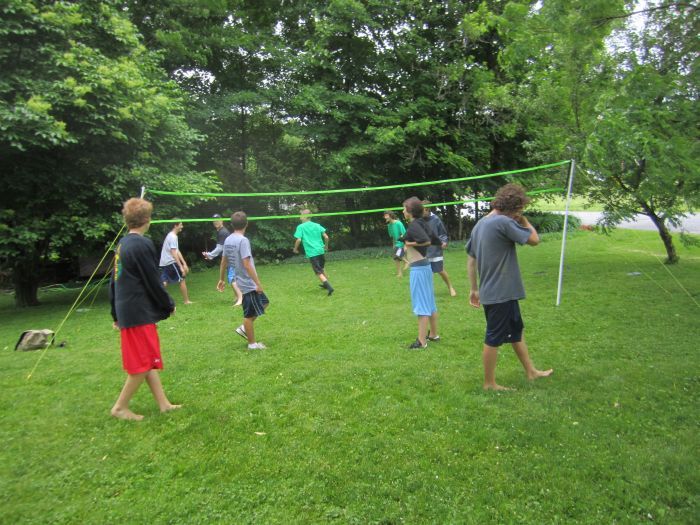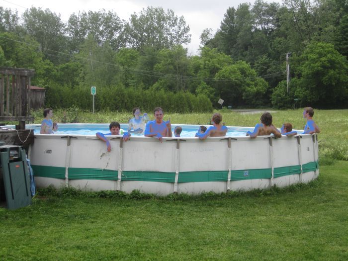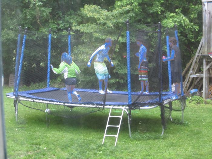 Despite the cool and rainy weather  about 40 kids. ran around outside.. playing volleyball, swimming jumping on the tramp, throwing water balloons all like it was mid summer.. oh.. wait.. it is mid summer