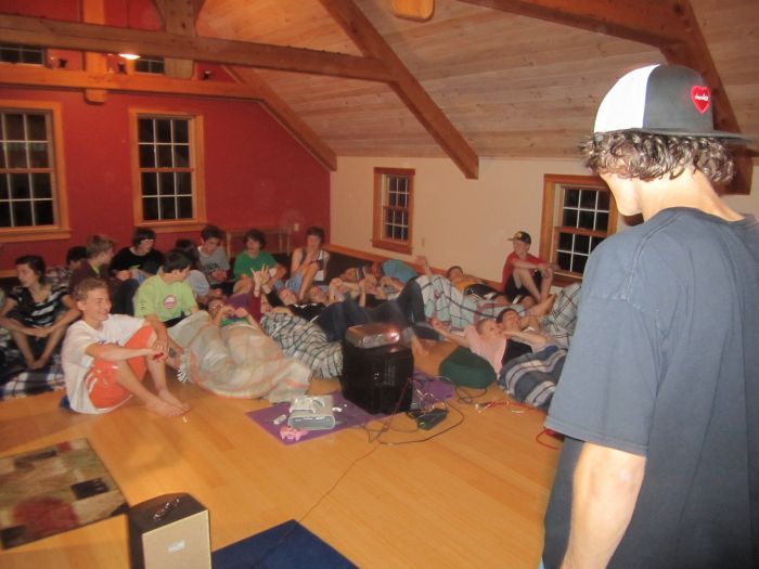 THen they all cae in from the cold to watch movies..
