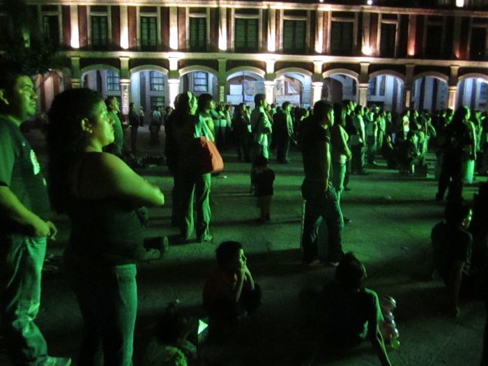 Last night we had a late dinner and did a little walking around Cuernavaca.. we came across this great scene, a crowd had gathered to watch Mexico vs Columbia for the jr world quarterfinals on large LED screen set up in the town square.. I caught sight of all these folks totally still,. bathed in green light.. it looked like something out of strange encounters.