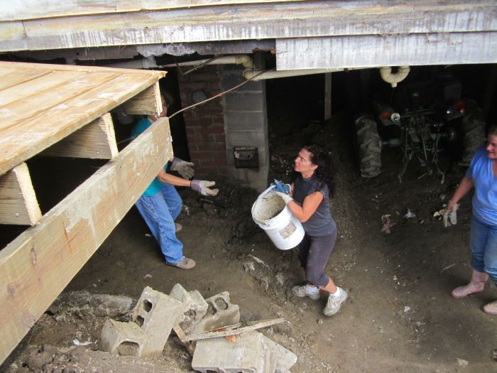 diane and I helped remove the back porch so that the excavator could get under the house.. to get the mud folks hadn’t already gotten out with buckets