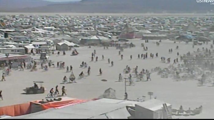 Anyway/. the inner and man street surrounding the playa is ‘esplanade’.. it’s crowded 24 hours a day.. here’s a screen shot I took of esplanade at base camp from the burning man web cam this morning.