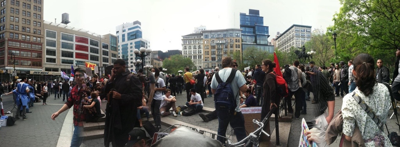 I spoke to Max today and sent me pics from nyc this morning . There were demonstrations there to celebrate labor and remind people of the principles of the occupy movement…