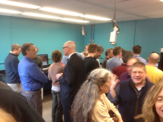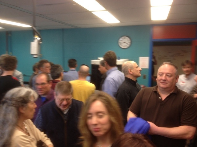 This afternoon was wonderful. We had our official opening of the vermont fablab. The VFL is a new facility at the university of vermont that will allow uvm students, high school students and local inventors to get access to state of the art rapid prototyping tools like 3d printers and laser cutters. VFL is only one of several facilities that are spontaneously forming to serve the needs of northern vermont makers .. There is also facility forming at essex high school, one at champlain college, one at pine street metal. So far all of the facilities are serving complimentary parts of the maker community.. It is so much fun to see the energy around this movement. W expected about 15 folks to come to today’s opening.. But i can remember talking to at least 70… So there must have been more than even that ! We had techies, artists, welders, musicians…. Very, very cool.