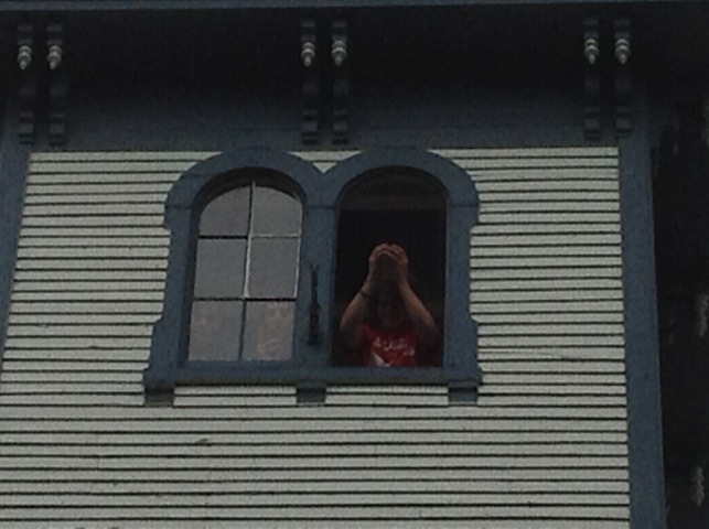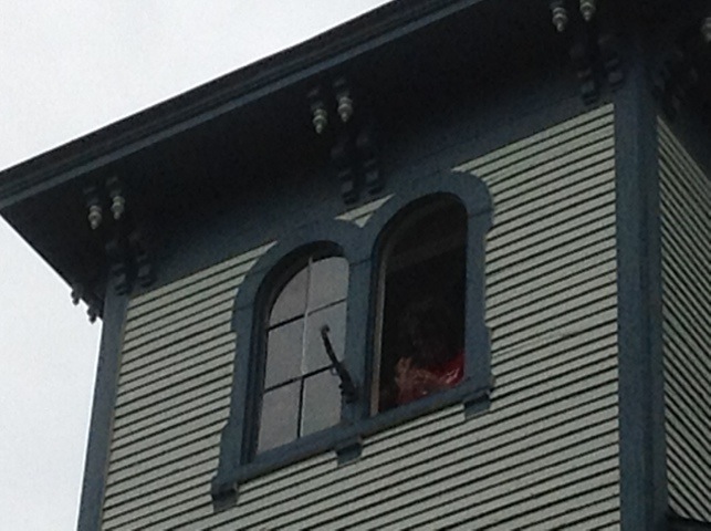 They decided to test the effect of dropping a huge super ball out of the tower window.l I was there to document the results.