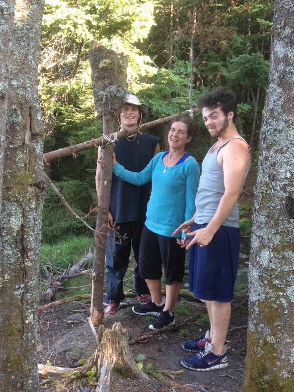 Greetings from the south flank of mt Mansfield . Max, gabe, Diane and I are 1 day into our 3 day backpacking adventure . We’re walking home from Stowe on the long trail. Today jen picked us up around 10 and drove us to the Stowe gondola . We rode up which may be considered cheating but was really fun. Then came the toughest climb of the day, the cliff trail. Diane started by dislocating the pinky of her right hand. She yelled then popped it back in and kept climbing. Atta girl ! There was about 200 meters of white knuckles (for me) hoisting to get our over heavy packs up to the junction with the long trail once there we launched a hit air balloon with SAMs name to lunch the trip . From there it was about 6.5 miles to Taylor lodge where we are now. On the way we incredibly ran into a couple mary and aaron from Virginia who’s wedding max attended last week (what ?!?!) aaron irat saw me and recognized me drom the colony.. Then he saw max and he frakd put . Max actually saved someone at the wedding by doing the heimlich.