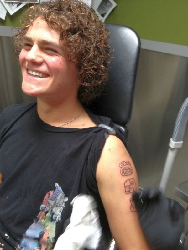 then Sam’s good friend Nate had the glyphs inked on his arm