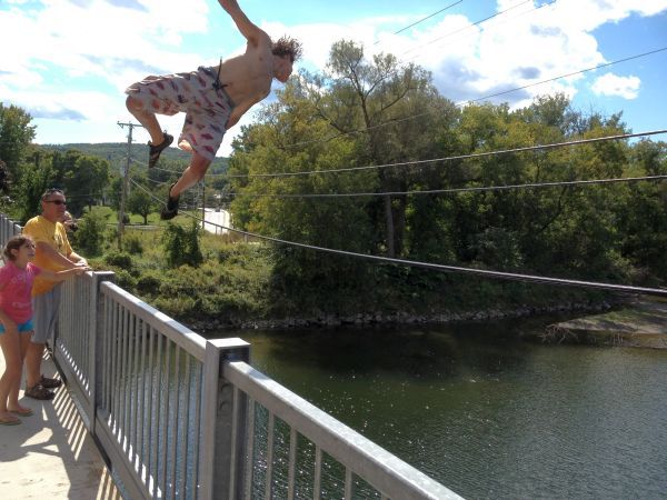Then back to the house for a while.. a short float in the pool.. then Gae and I went and met Marcello and his family, All of us managed to ‘fall’ off the Richmond bridge. Gabe with back flips.. me jut doing a pencil. It’s about a 40 foot drop.. so feet first works for me.. It was just what I needed to make me forget my tummy bug .