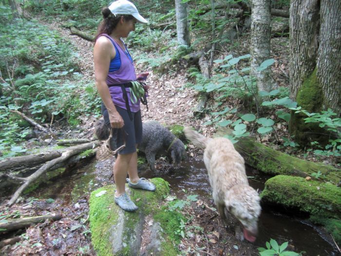 Right after the shelter we ran into our friends and neighbors Veronique and Matt and their dog Toby. They were planning a quick up and downjusst to Duck Brook and back, but Diane had the great idea of giving them our car key and letting them hike the same thing we’d just done in reverse. It gave them a chance to see the really nice parts of the trail beyond the shelter.. and it allowed us to get our car back here .. everybody made out.. they loves the hike.