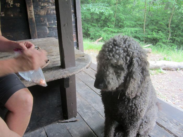 We stopped at duck brook shelter to give the dogs a rest and drop off a samstone.