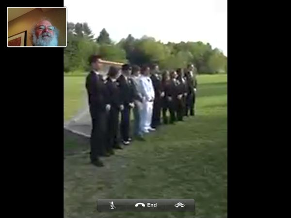 Woke up early so I could Facetime with Gabe who was going to the Senior prom with Raya tofday (aka last night in Vermont) . technology is so cool that I could call them standing in a park near mt mansfield and see how they looked. .. and they looked great.. !!!