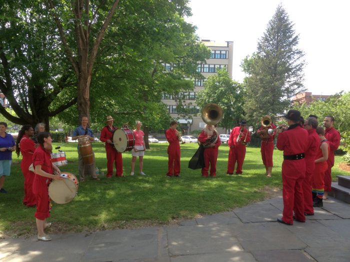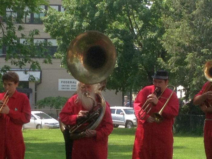 one breifly noted thing.. there was soem great upbeat klezmer music wafting over from the Unitarian church. john and I walked up to check it out. My buddy Sturat, our Taiko snesei was in their drumming. I assumed that it was there a weeding going on… When My friend Mr Madden walked by I asked. He told me it was a Funeral.. for a great woman..