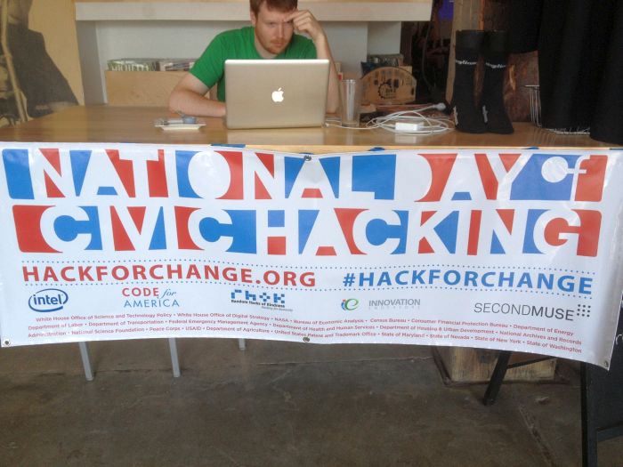 I had a great weekend doing something good for my community. that also related to my work. I participated in (and minimally helped organize) the Burlington event for the First National Day of Civic Hacking arraigned by Code for America and the White House. Code For America has ;Brigades’ all over the country here civic minded programers volunteer their time to work on software to help their communities. I’m trying to get more folks in my company to participate in these Civic Hacking events because a) its good for the community and b you can pick up some great skills while helping out.
