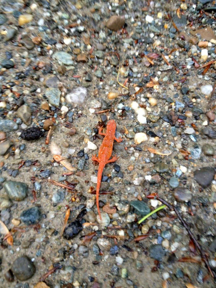 Diane , Gabe , the dogs and I took a hike up Hney Hollow after dinner.. and the place was swarmign with these cool orange newtS !