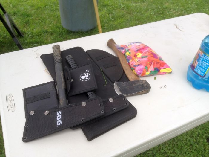 Gabe set up a target and all the kids through knives and tomahawks.. we stayed across the yard from all that..