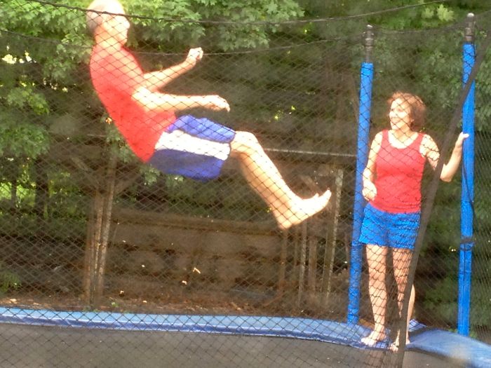 Keuth and ann were on the tramp practicing their double bouncing.. it was so cute to watch !