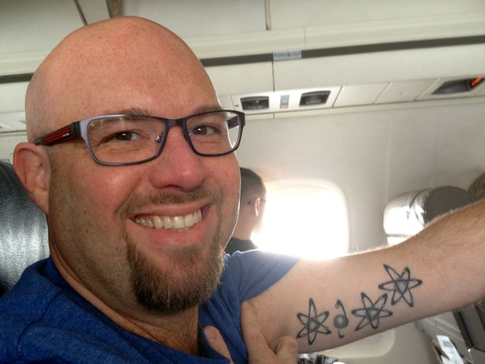 His card says star stuff.. but so does his arm.. I saw his ink and realized it was Carbon, Hydrogen, Oxygen, Nitrogen… the four most common element sin the known universe.. and an anagram of our name COHN  !  How cool is that !!!!??