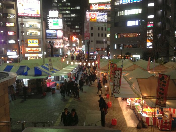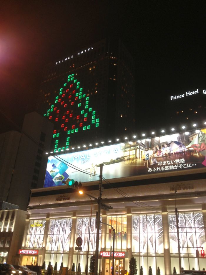 We got to Narita about 4:30, I got on the train to Shinagawa and was in my hotel by 6:30.. I was oo sleepy to do much other than walk around in the cool tokyo evening. Christmas is everywhere here.. decorations, music, fake snow..