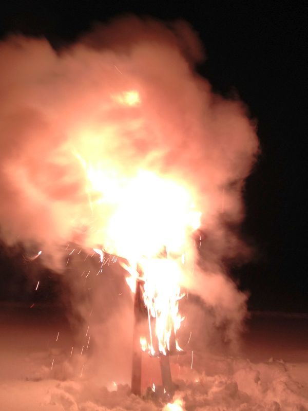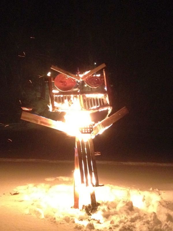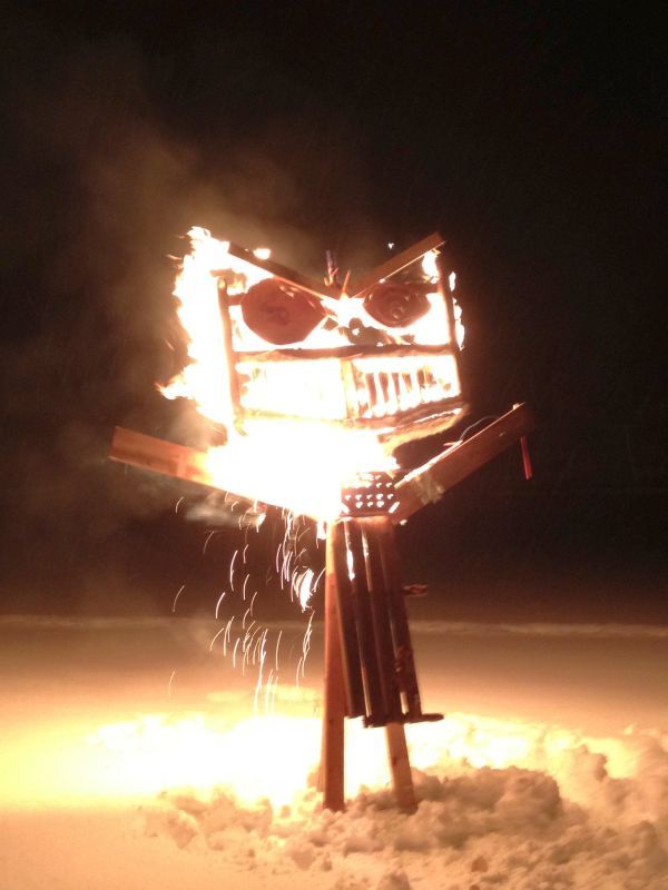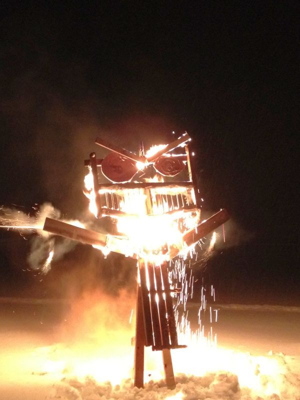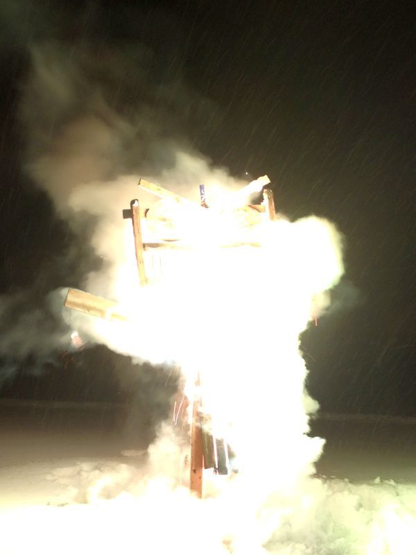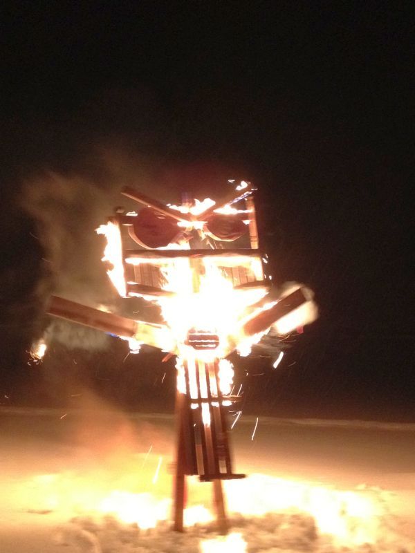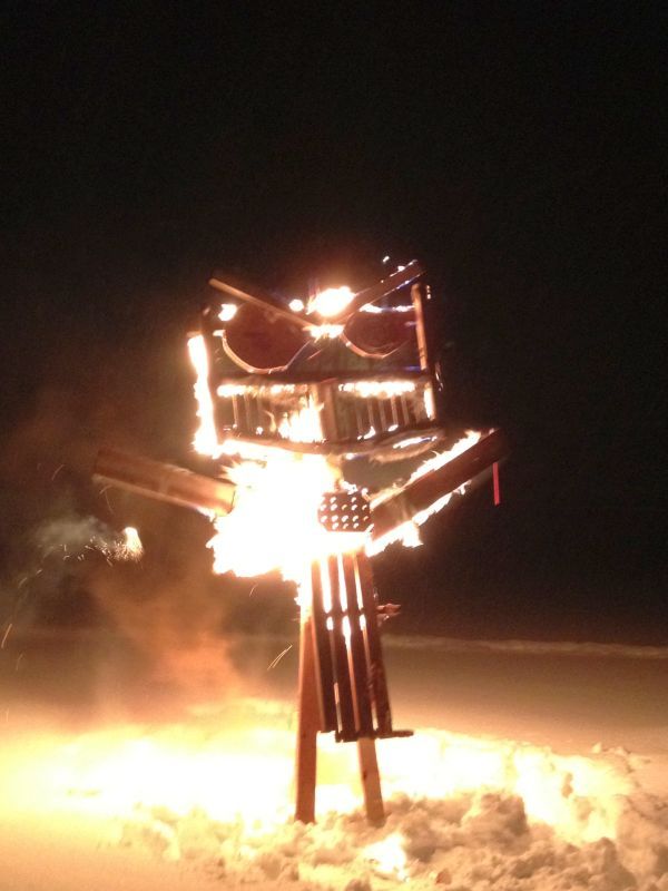 My contribution was a small burning man to usher out the year. Gabe and I ignited him with a drop of water on a mix of Ammonium Nitrate, Zinc dust, and iodine.. on a bed of zinc and sulfer… very cool…