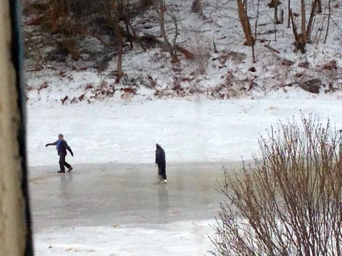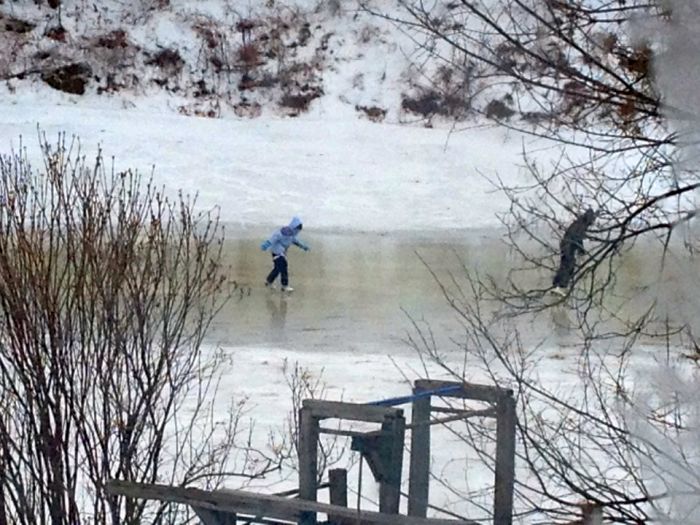 The ice has transformed  everything around us again. Our yard is covered with a hard white glaze and the field behind us which is normally covered in stubble is as smooth as glass. The lovely Davis girls were over today playing with Diane. They took advantage of the conditions to go out and skate on the old cow pasture.