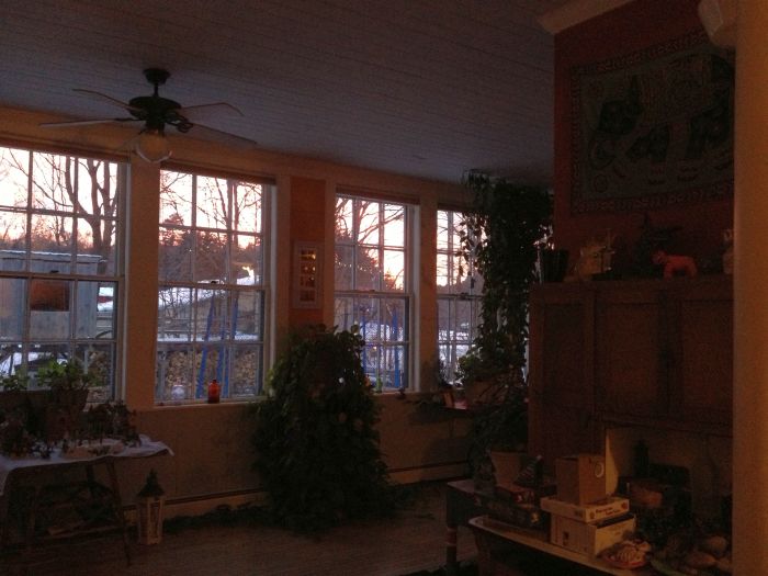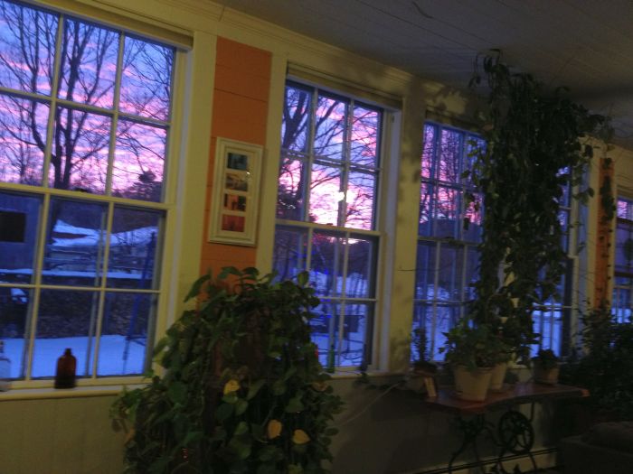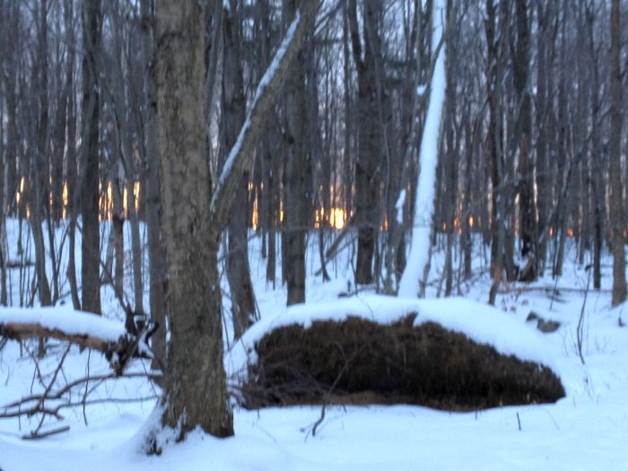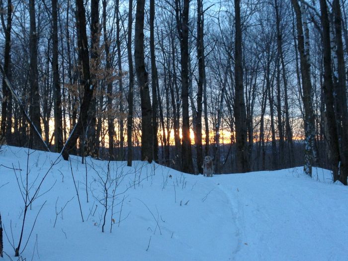 Gerneator duty took longer than expected today, so I didn’t get home until 3.. but there was still time for a quick snowshoe in the woods with dian and the dogs.. We were enjoying the nearly 20 degree weather.. almost 4 degrees warmer than yesterday !.. Check out the beutiful sunset…