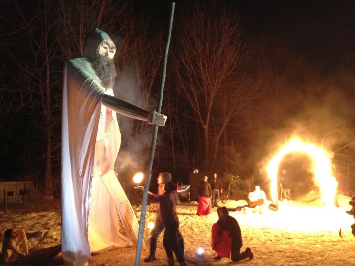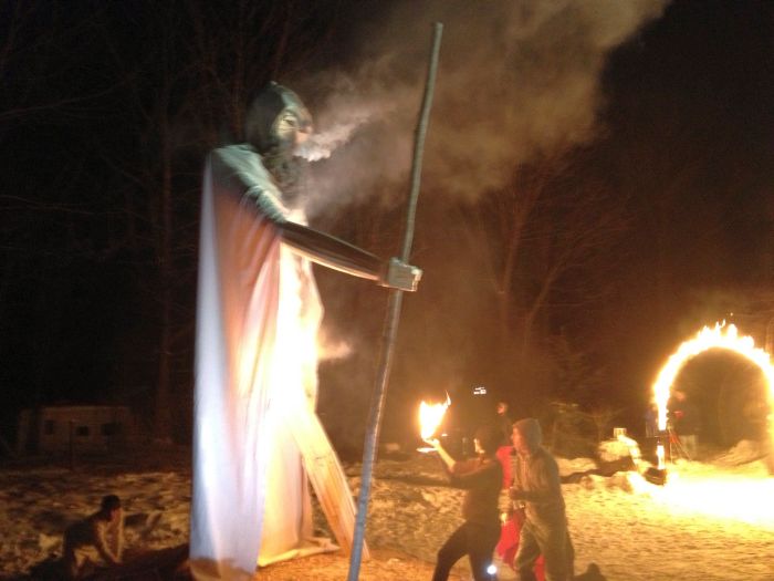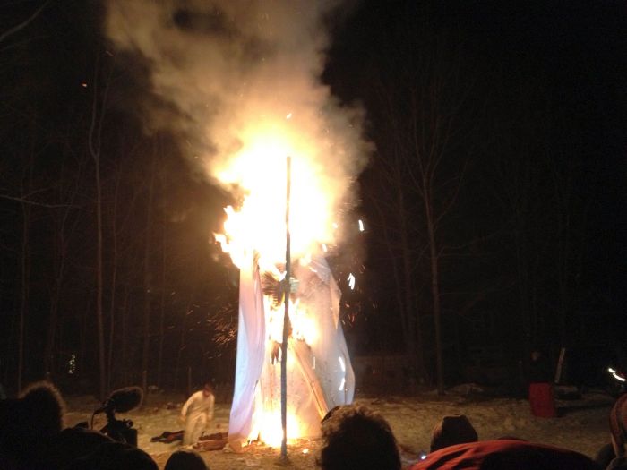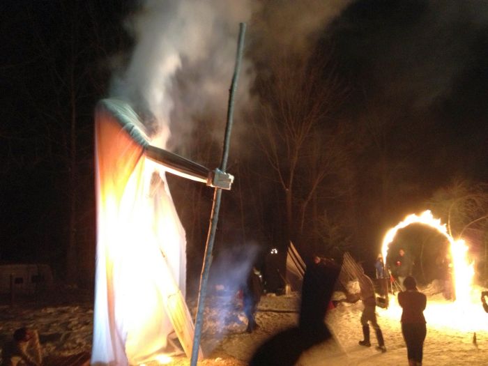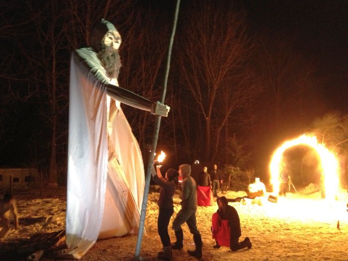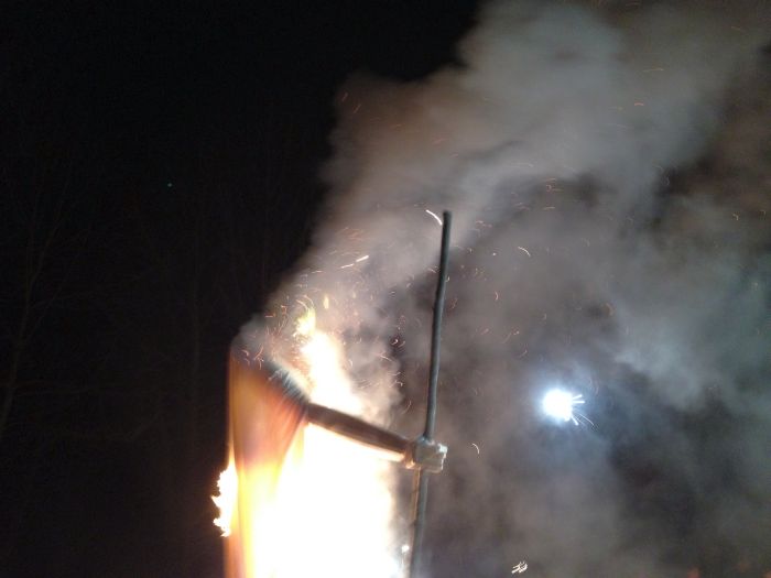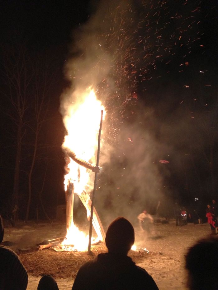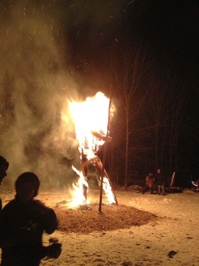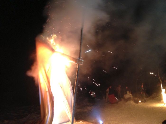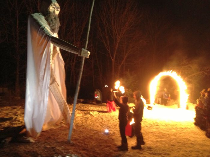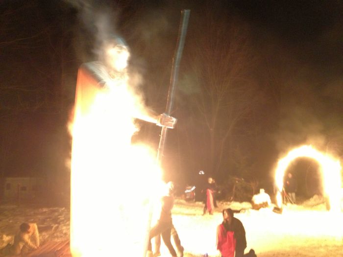 The big event for the evening was about bout building and burning. Chris was having another of his wonderful burns.. This one was Old Man Winter. He was sceduled ot burn on the solstice.. but it was the day of the ice storm.. so chris had to call off the burn.. Good thing too, because the new date of today allowed so many more people to come and check it out.. there must have been 100 folks there tonight to see fire danceign and the burn.. What a great spectacle. great company, really great homemade beer.. and great, great fire ! I do love fire.