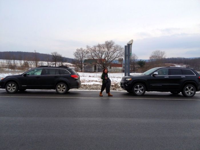 We left Diane’s folks house… now her’ mother’s house I suppose.. and headed back to Vermont. We ended up in a sort of unintentional caravan with Jen and Deb who left about the same time. We kept calling back and forth from car to car.. so  about midway..  we decided to swap.. we let dine go into the girls car so Gabe and I could put on loud obnoxious music. It worked out well.