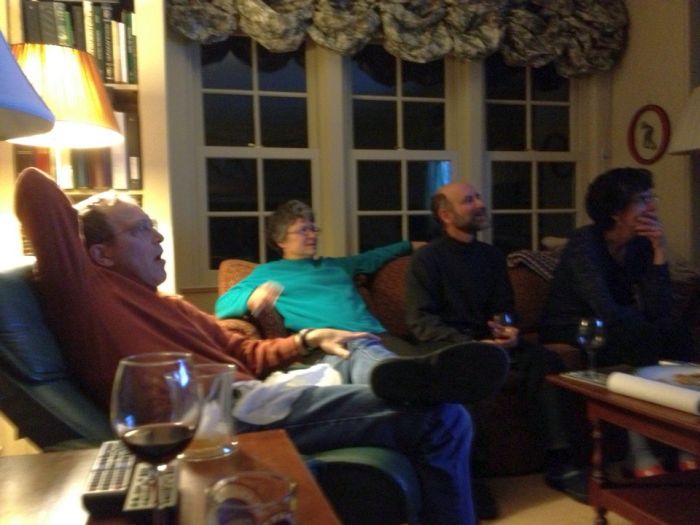 We watched the superbowl together.. at least they all did. Luckily, bill has a closset full of brainteaser puzzles that kept me busy while the orange shirt  guys were getting trounced by the white shirt guys on tv.