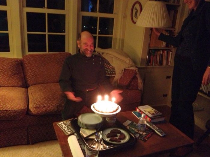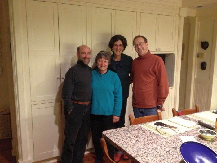 We got home in time to take a good head clearing hike.. then back n the car to go visit my cousins bill and jon. Jon’s my dad’s first cousin and he and his wife’ Jean’s kid Evan is a freshman at middlebury They’d come from Wisconsin to see him compete in a ski race in stow.