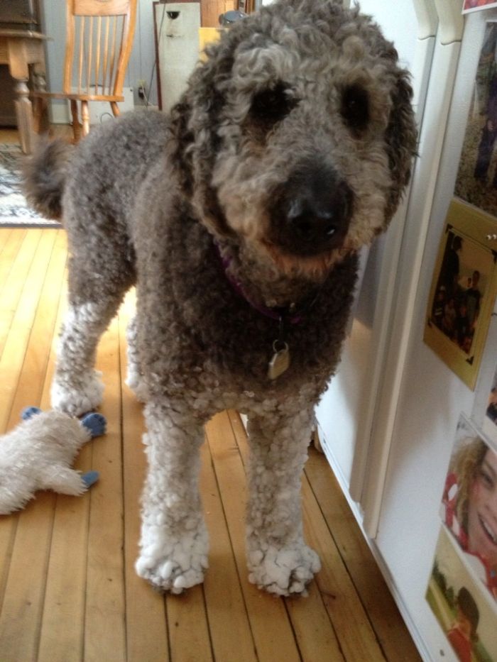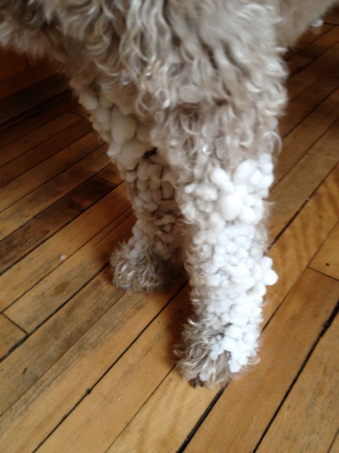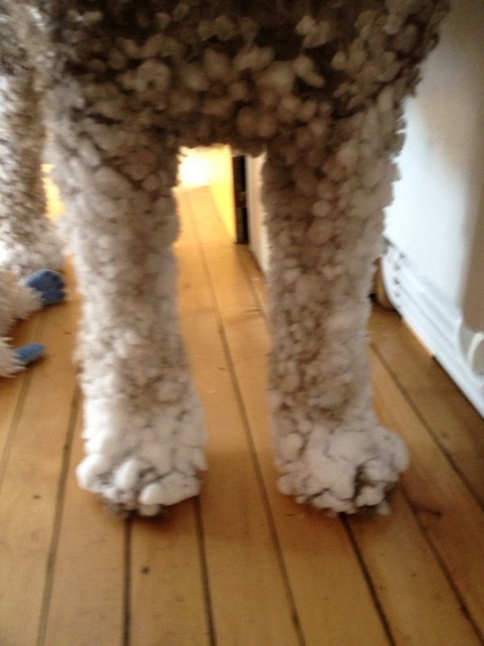 the dogs were so covered in snow that I needed to put them both in the tub to thaw them off..