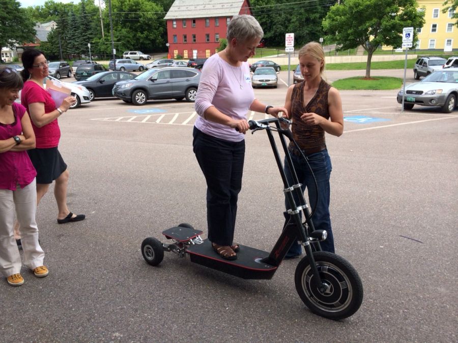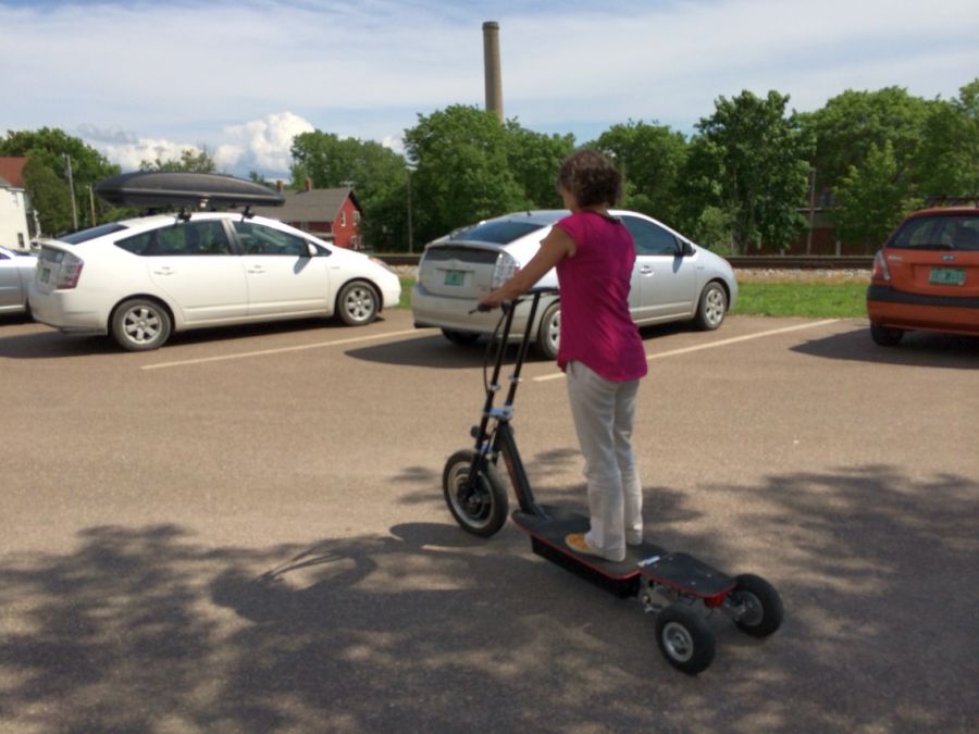 I’d invited my friend Karen tot he meeting. Karen is a whiz at the programming language Ruby.. actually… Karen is a whiz at many tings related to programming. Today she brought her very cool electric scooter.. and we all got to take it for a spin .