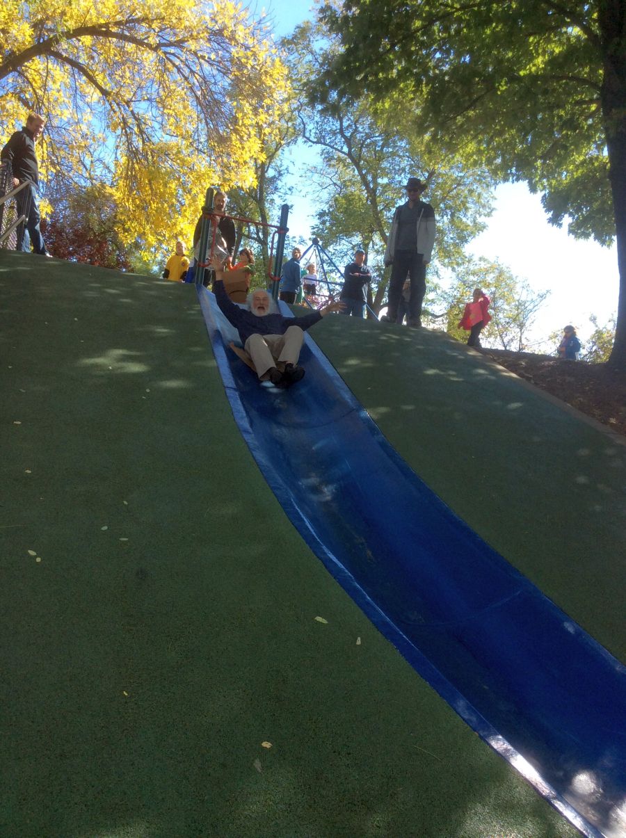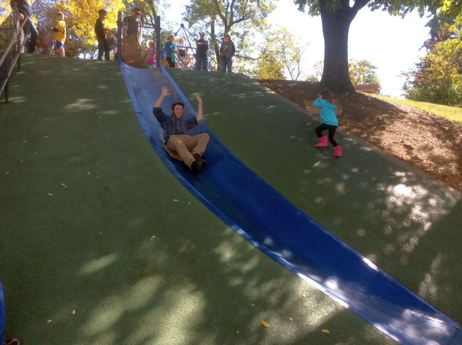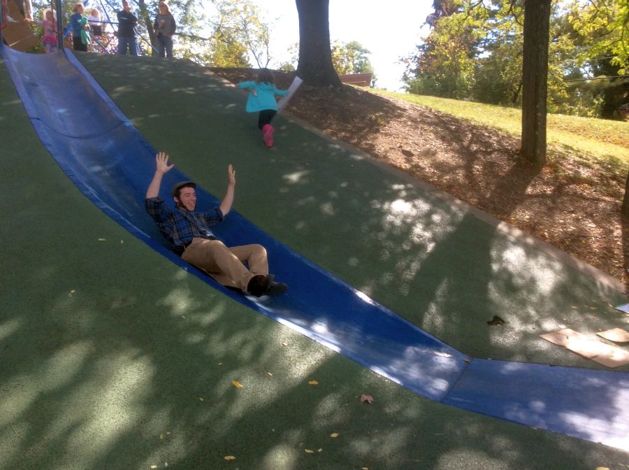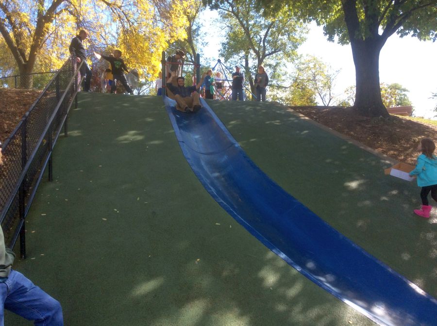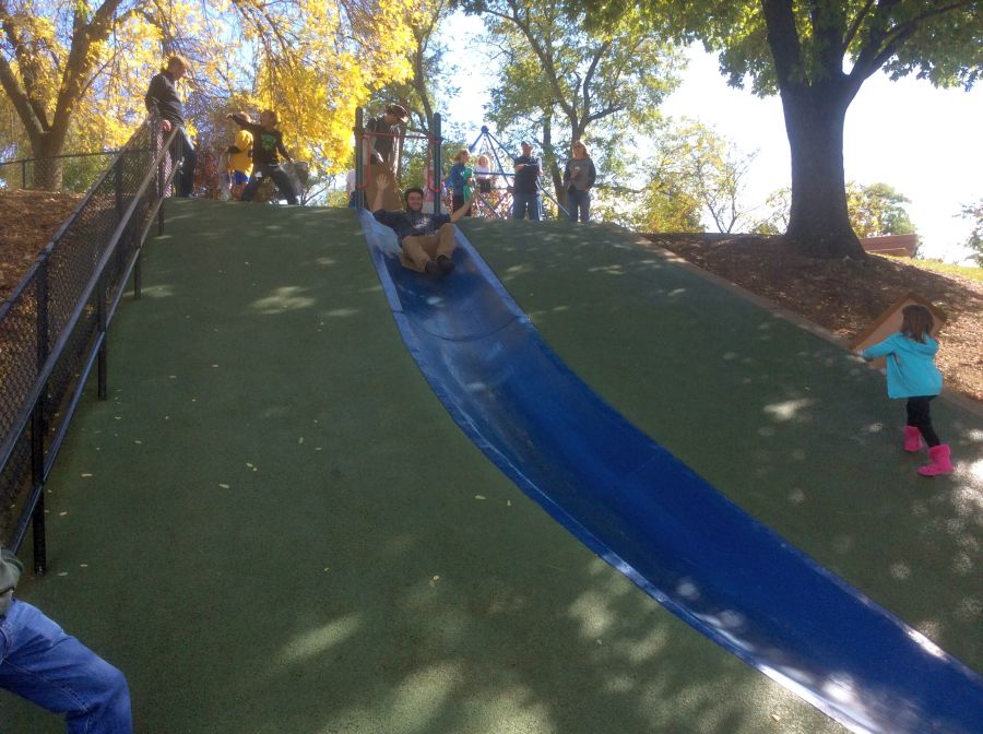 it was so great visiting Frick park.. The famous blue slide was still there.. Max used to go up and down that for hours, He and I both took a quick turn for old times sake !
