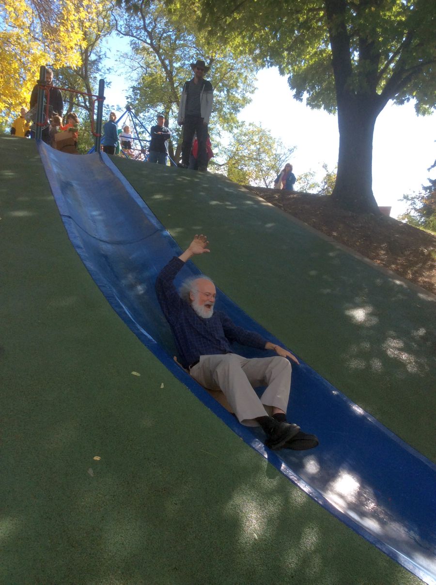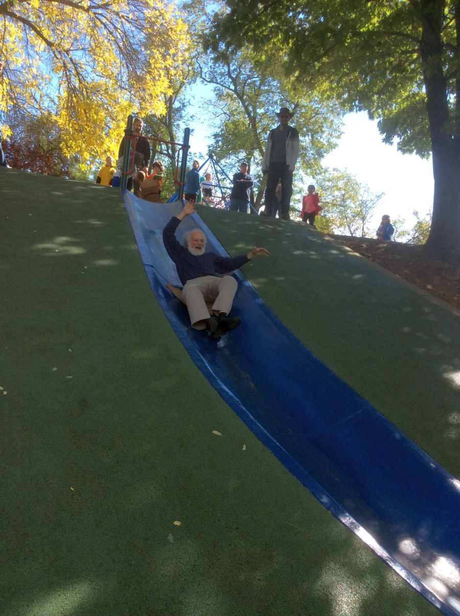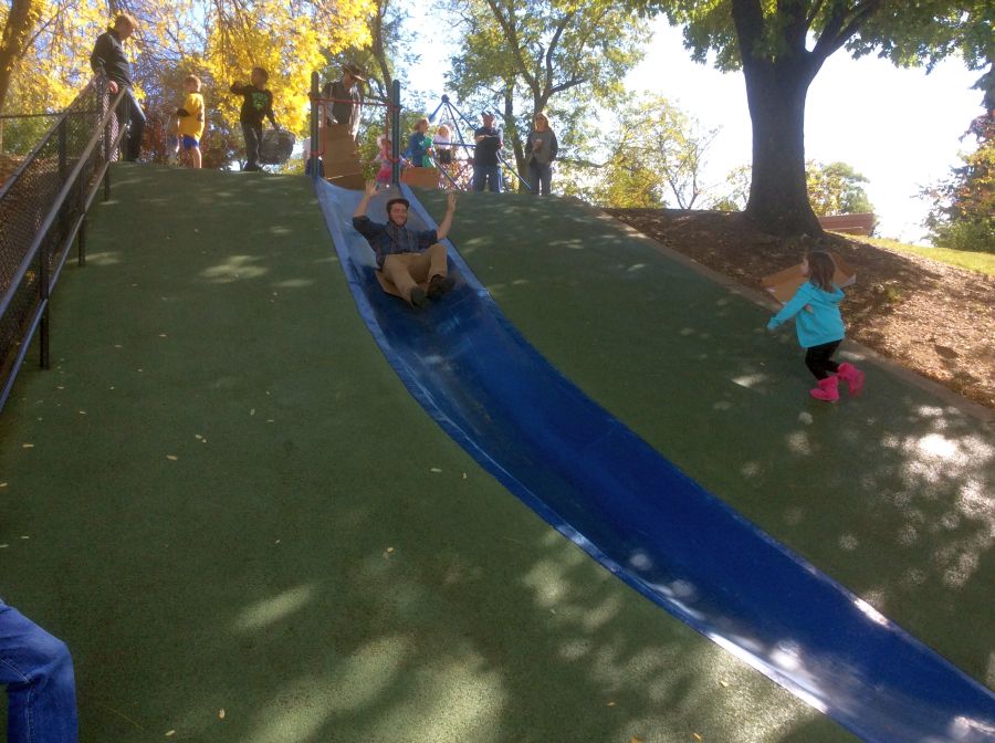 it was so great visiting Frick park.. The famous blue slide was still there.. Max used to go up and down that for hours, He and I both took a quick turn for old times sake !