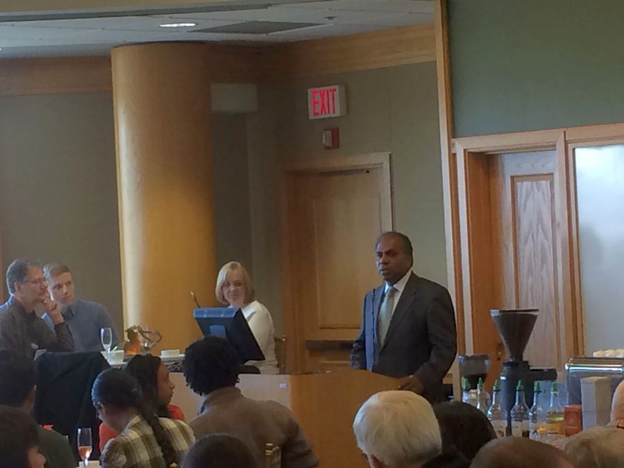 From there we went to a lovely reception for engineering alumns and faculty. lots of folks to catch up with .. and wonderful food and drink. The big event was the mounting of a beam that everyone had signed as part of the new Scott Hall which will house the new bioengineering program as well as several other cross disciplinary programs. Both Dean Garret and President Suresh gave some short remarks.. Both gave a shout out to me for the award which was very nice of them