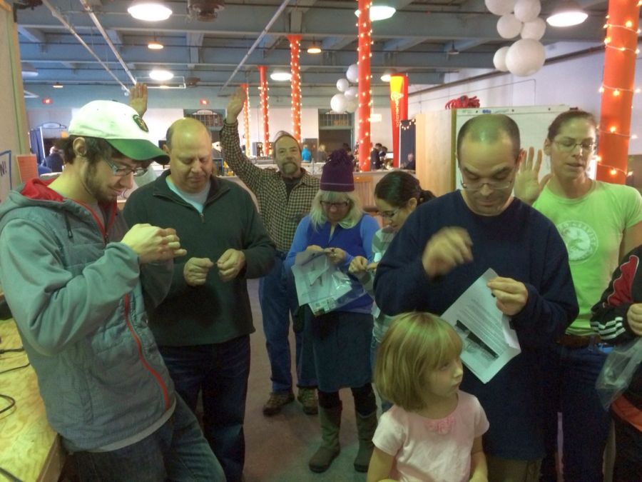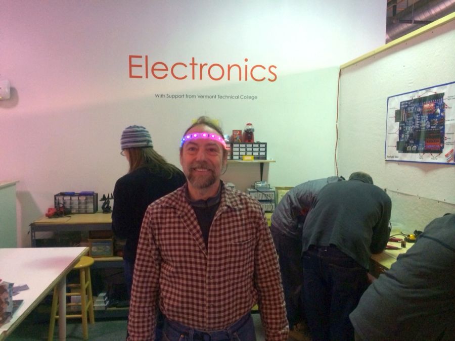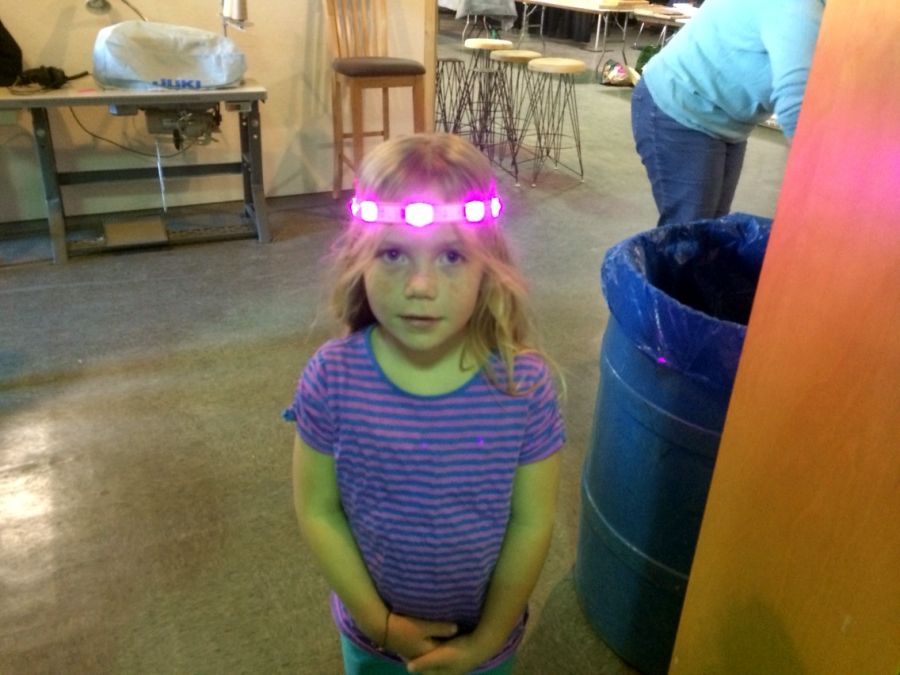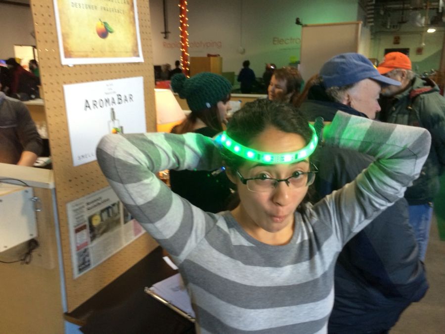 Today I ran a ‘how to make a blinky headband’ class at the Generator. We had 15 folks signed up.. but by days end. we had made 22 of the things. (if you want.. you can build one too with instructions i wrote that you can find here .. ). Thanks to my two very able helpers Rachel G and Karen W.. I dion’t know how i thought i could do it on my own.. They were awesome. Thanks also to Nance from Aerator for all her help getting ready.