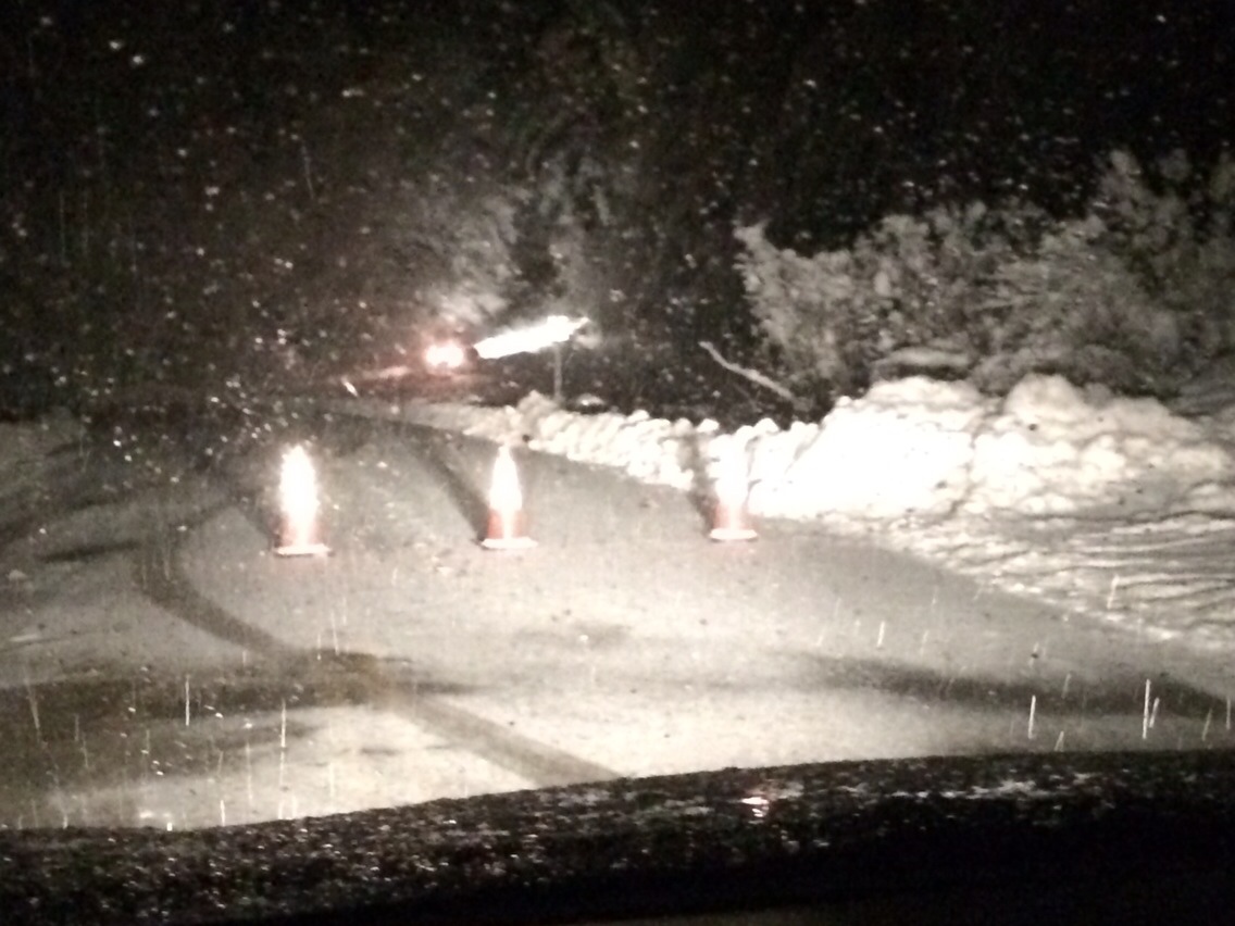 Came home to find the road blocked at our driveway and the power off.. Snow is still bringing down power lines… Guess its time to go to bed