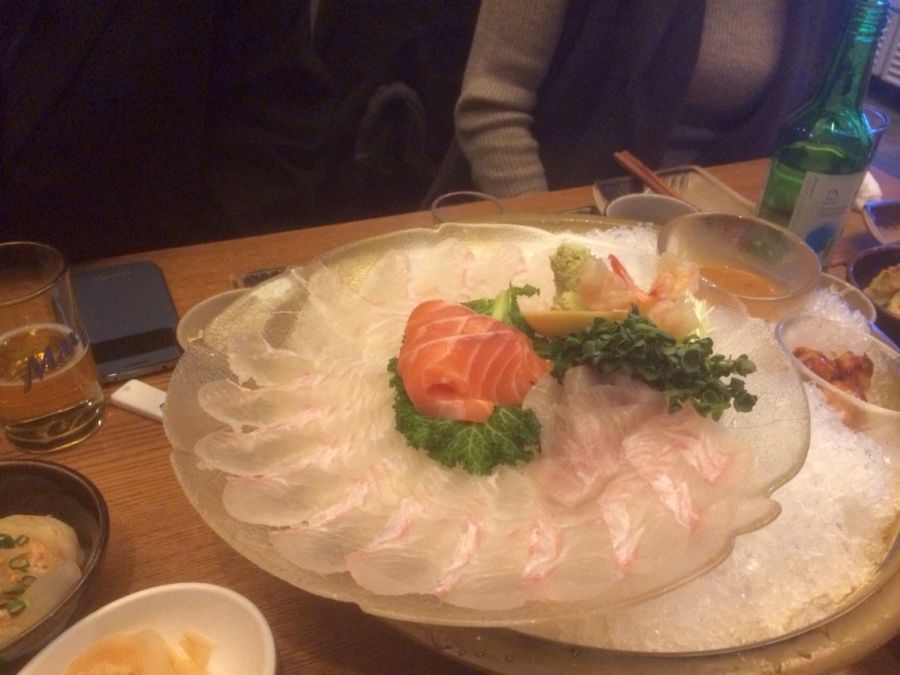 Almost got ripped off getting a cab to the hotel.. but it worked out.. .I checked in.. then walked through the slush to a nearby mall and had food court sushi by myself.. instant homesickness !