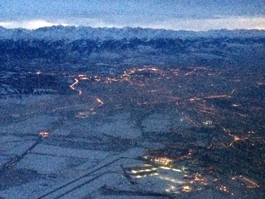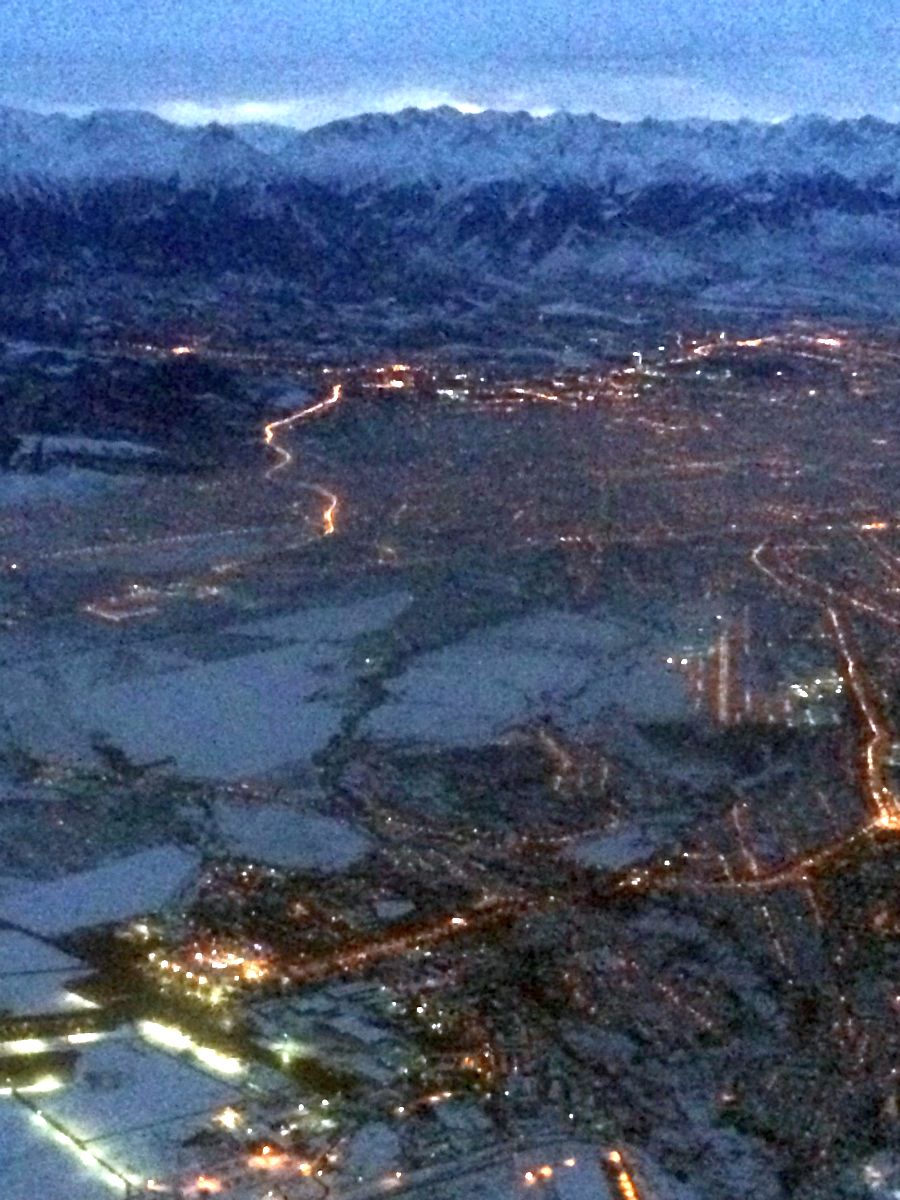 it was gettign dark as we flew in to Almaty.. it was still light enough to see it’s amazing setting !