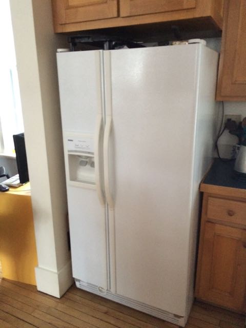a completely clean refrigerator.. all the pictures, lists, poems, magnets, coupons banished to some drawer somewhere..
