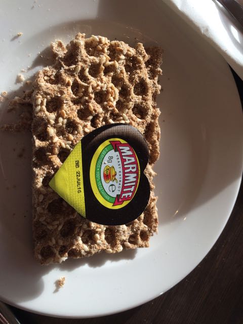 we were too early for breakfast (8 am ?!?) .. so we scrounged in the hotel for food. I found some marmite (ewwwww). the hotel guy took pity on me and brought me some cheese..