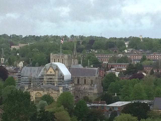 Woke today with a sore throat and fever.. but happy none the less.. we had the whole day to ourselves and I wasn’t going to let a bug keep me from enjoying it. Diane had planned a three hour walk to some of our favorite Winchester sites .. We took off at 8 and got back around 11:30..  It was a great day for walking.. cool, windy and a occasional sprinkles.. much different than the 90 degree heat we hear we have at home